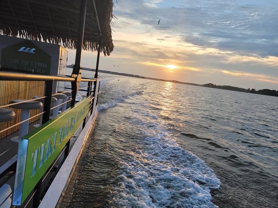 The Liquid Tiki sails rain or shine thanks to our synthetic thatched-covered tiki roof that covers the entire bar area. The Tiki also has clear side panels to roll down to protect from the wind and rain in the bar area. However, the captain can decide at any time to cancel a trip for any reason and will make the final determination. No shows will be charged the full price